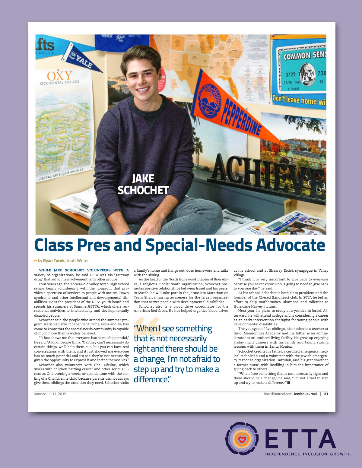 Jewish Journal: Class Pres and Special Needs Advocate: Jake Schochet